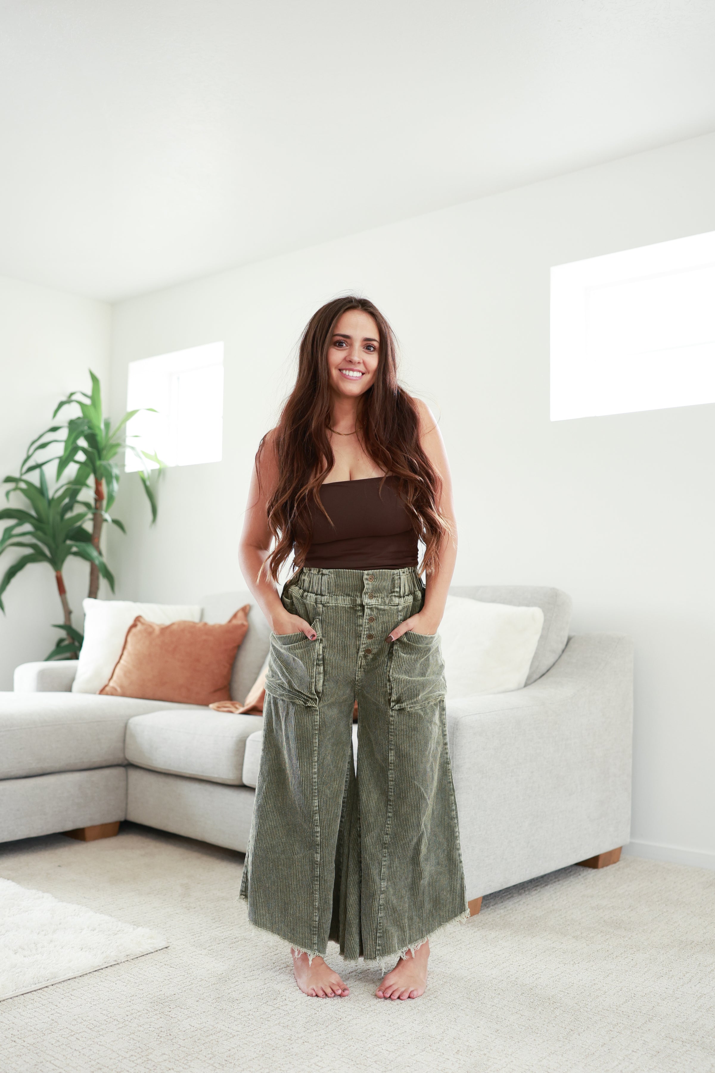 SHORT GIRL FRIENDLY ONLY *** MINERAL WASHED CROPPED FRAY HEM CORDUROY WIDE PANTS
